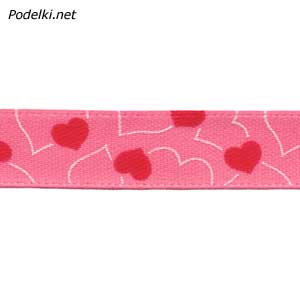 Атласная лента ALP102-H12-014 розовая с сердечками 10 мм