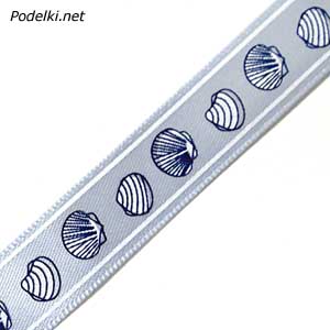 Атласная лента ALP122-M1-132 голубая с ракушками 12 мм