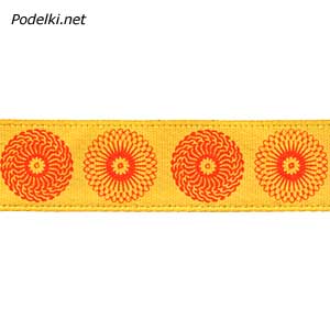 Атласная лента ALP122-O6-017 желтая с кругами 12 мм