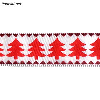Атласная лента ALP122-P6-001 белая с красными елочками 12 мм