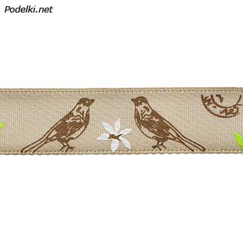 Атласная лента ALP123-F12-150 бежевая с птичками 12 мм