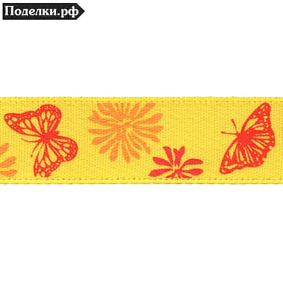 Атласная лента ALP123-F5-015 желтая с бабочками 12 мм