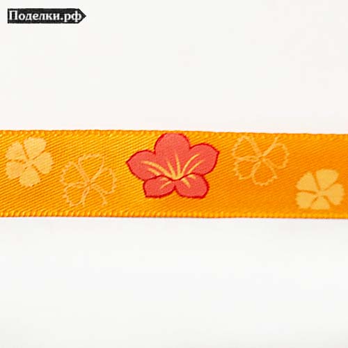 Атласная лента ALP123-F6-021 оранжевая с цветами 12 мм