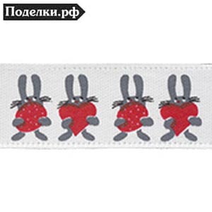 Атласная лента ALP123-H17-001 зайчики с сердечками 12 мм