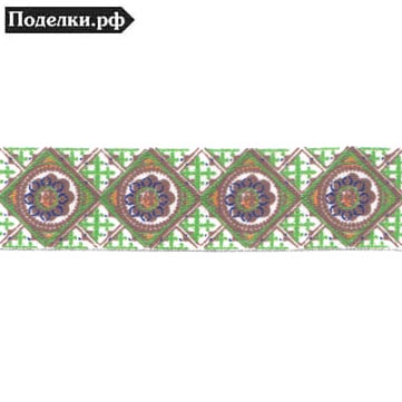 Атласная лента ALP124-08-123 цветочки в ромбах 12 мм