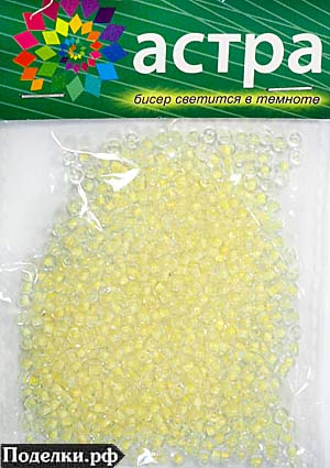Китайский бисер светящийся в темноте AS-00002 желтый прозрачный (8/0) 3.1 мм 20 г.