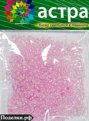 Китайский бисер светящийся в темноте AS-00010 розовый прозрачный (8/0) 3.1 мм 20 г.