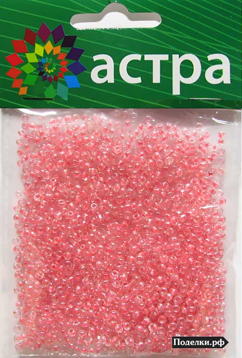 Китайский бисер AS-2204 прозрачный с розовой серцевиной (11/0) 2.1 мм 20 г.