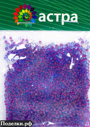 Китайский бисер AS-303 голубой прозрачный с лиловой серцевиной (11/0) 2.1 мм 20 г.