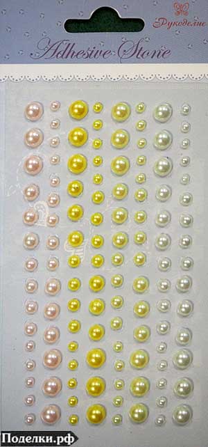 Полубусинки на клейкой основ, от 3 до 6 мм, белый, нежно-желтый, желтый, нежно-розовый цвет