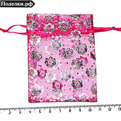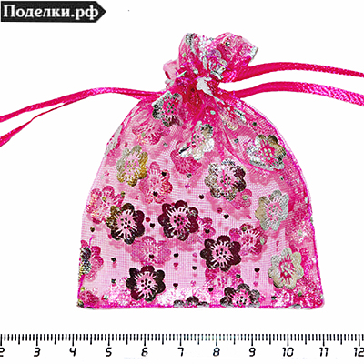Пакетик из органзы DD21-01 ярко розовый с цветочками цвет 7x9 см