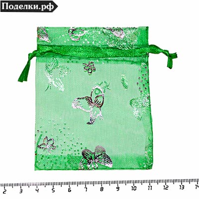 пакетик из органзы dd21-02 ярко зеленый с бабочками 7x9 см