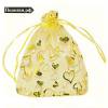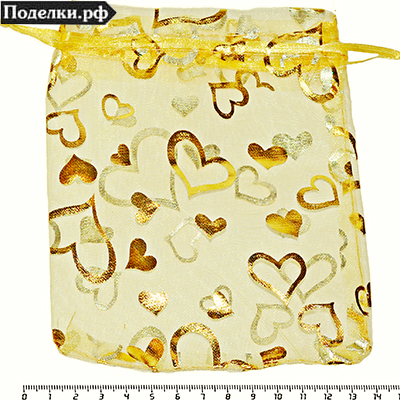 Пакетик из органзы DD21-05 светло-золотистый с золотыми сердечками 13x15 см