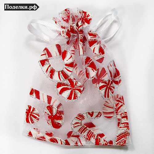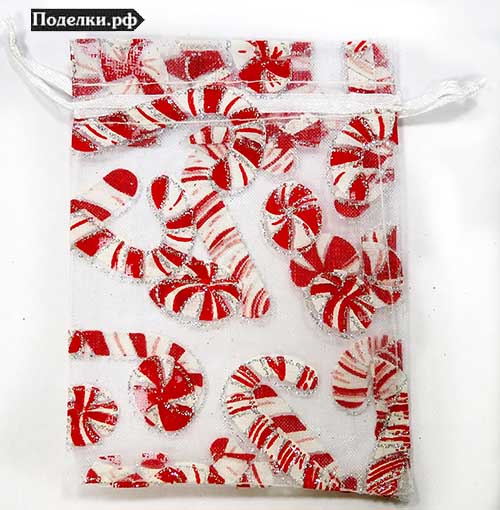 Пакетик из органзы DD21-23 белый с леденцами 9x12 см