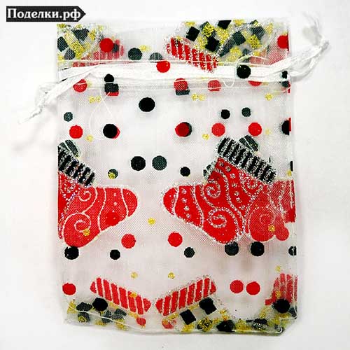 Пакетик из органзы DD21-24 белый с валенками 9x12 см
