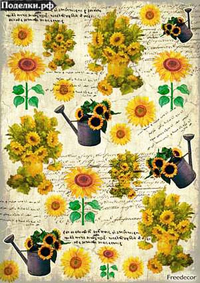 Декупажная карта DK-127 Букет из подсолнухов 42x30 см