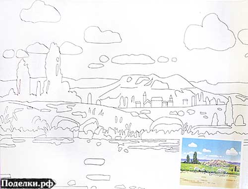 Холст на картоне с контуром DK13701-B Пейзаж-2 30x40 см
