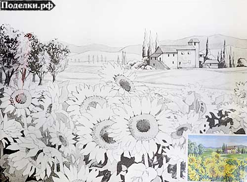 Холст на картоне с контуром DK13701-F Подсолнухи 30x40 см