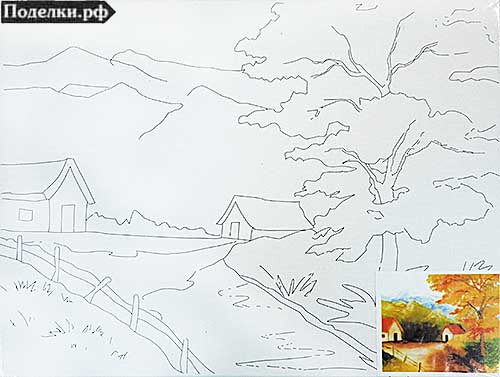 Холст на картоне с контуром DK13701-J Деревенский пейзаж 30x40 см