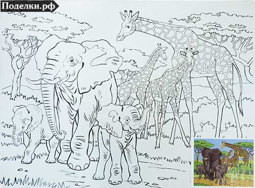 Холст на картоне с контуром DK13701-M Слоны и жирафы 30x40 см