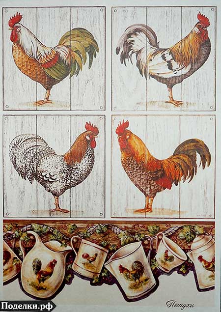 Декупажная карта DKPAS-42 Петухи 42x30 см