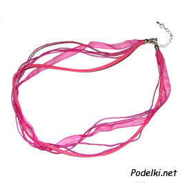 карабин серебряного цвета, 6 нитей (органза, замша, ткань)