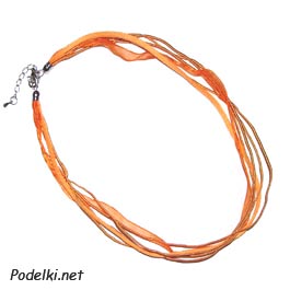 карабин серебряного цвета, 6 нитей (органза, замша, ткань)