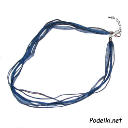 карабин серебряного цвета, 6 нитей (органза, замша, ткань)
