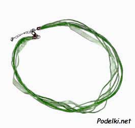 карабин серебряного цвета, 6 нитей (органза, замша, ткань)