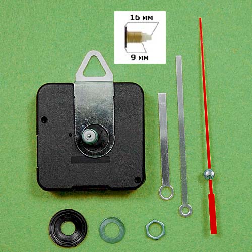 Часовой механизм M-1618 бесшумный плавный ход, со стрелками, шток 16 ммЧасовой механизм M-1622 бесшумный плавный ход, со стрелками, шток 16 мм