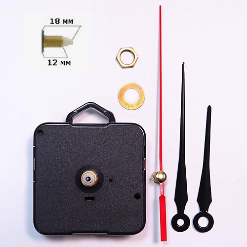 Часовой механизм M-1810 бесшумный плавный ход, со стрелками, шток 18 ммЧасовой механизм M-1812W бесшумный плавный ход, со стрелками, шток 18 мм