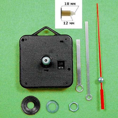 Часовой механизм M-1819S бесшумный плавный ход, со стрелками, шток 18 мм