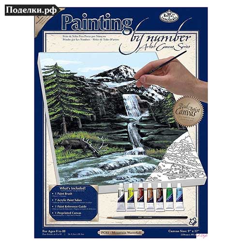 Раскраска по номерам на холсте PCS1 Водопад в горах 22.9x30.5 см