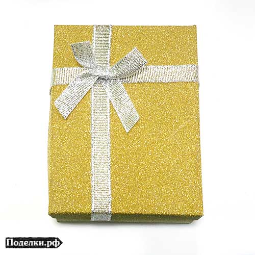 Коробочка подарочная картонная с бантиком PK-001 золотистая 11х8х3 см