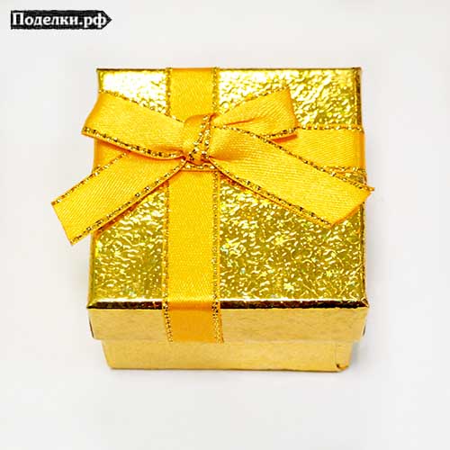 Коробочка подарочная картонная с бантиком PK-027 маленькая золотистая 5х5х3 см