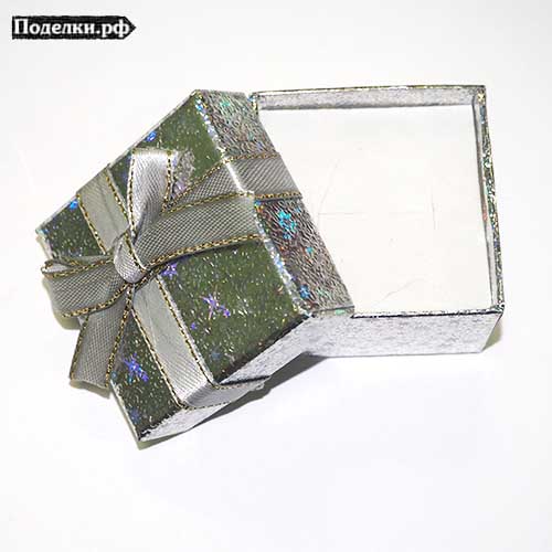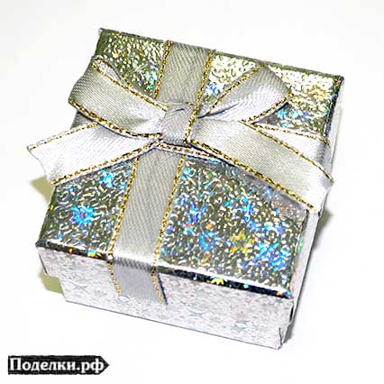 Коробочка подарочная картонная с бантиком PK-028 маленькая серебристая 5х5х3 см