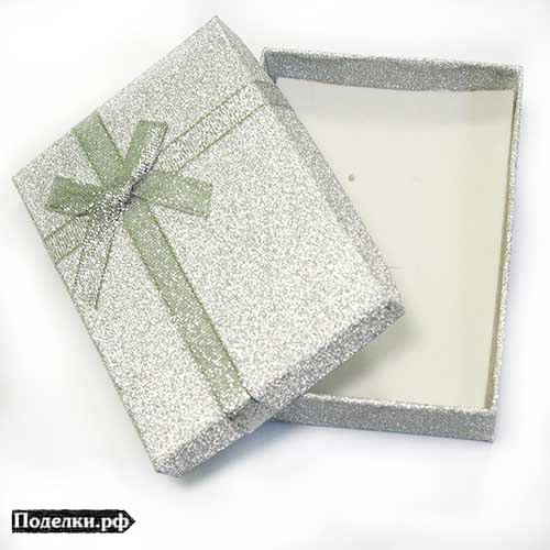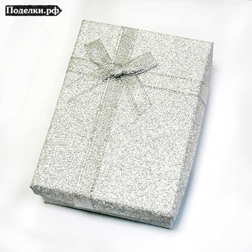 Коробочка подарочная картонная с бантиком PK-031 серебристая 11х8х3 см