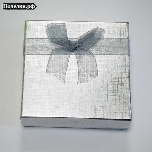 Коробочка подарочная картонная с бантиком PK-032 серебристая 9х9х3 см