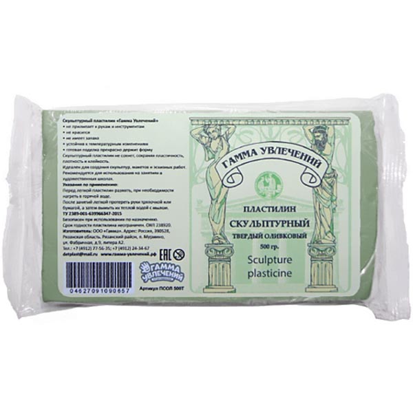 Пластилин скульптурный Гамма ПСОЛ500М оливковый мягкий 500 г.