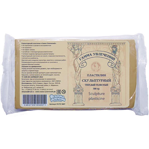 Пластилин скульптурный Гамма ПСТЕ500М телесный мягкий 500 г.