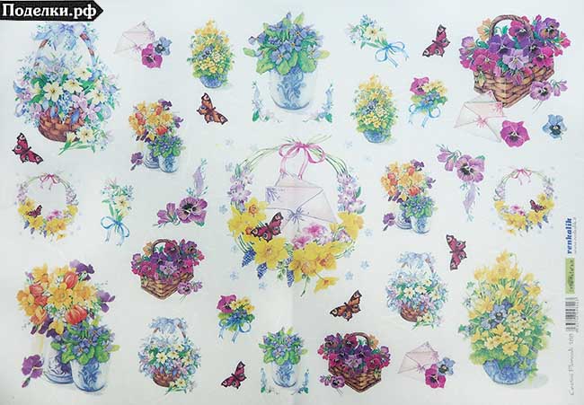 Рисовая бумага для декупажа QSIPR-188 Цветочные корзины 35x50 см