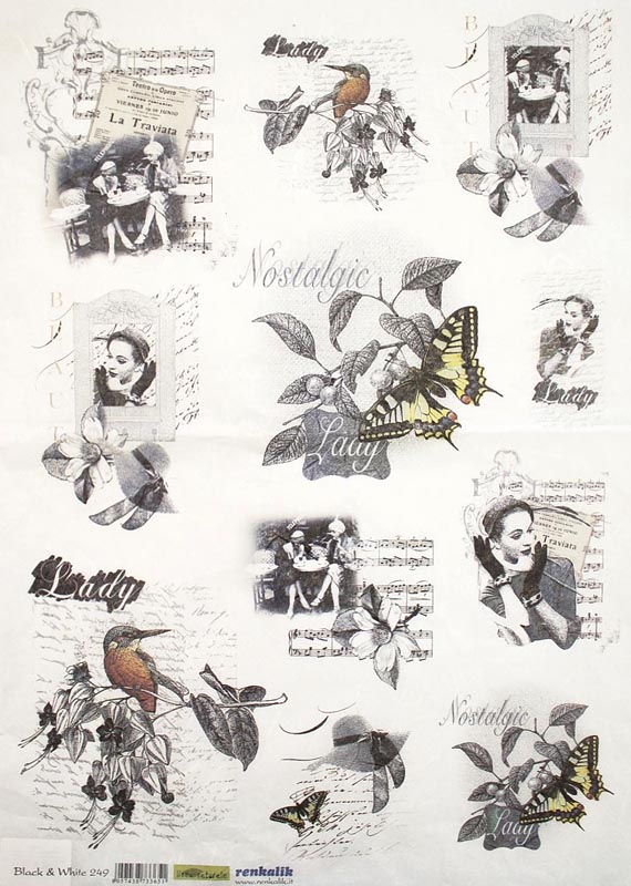Рисовая бумага для декупажа QSIPR-249 Черное и белое 35x50 см