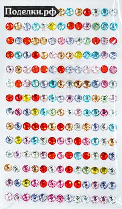 Стразы на клейкой основе, 5 мм, разноцветные, 180 шт.