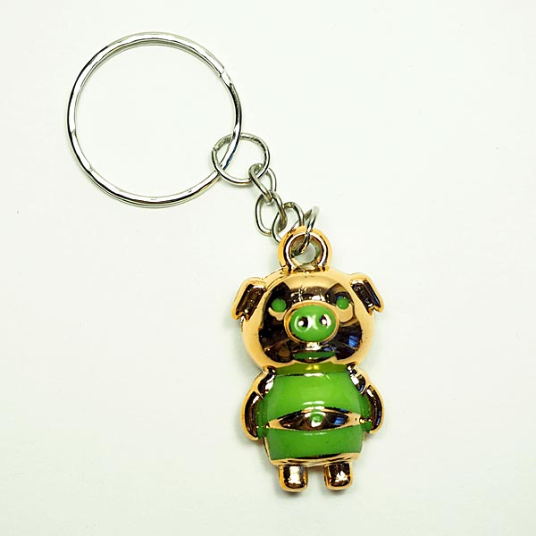 Брелок Поросенок TOV-0034 золотой цвет с зеленым 37х22х17 мм