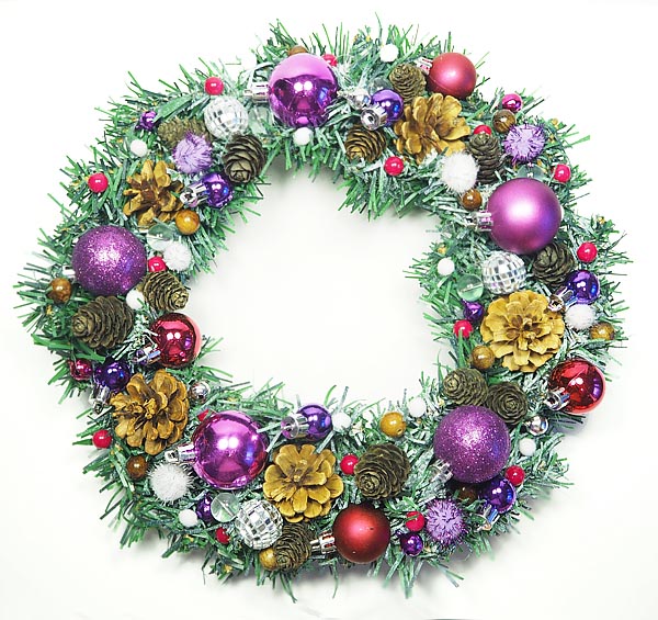 Венок Новогодний с шариками TOV-0038 ручная работа 29 см
