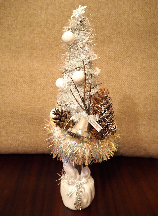 Елочка Новогодняя белая с колокольчиком и шишкой TOV-0047 ручная работа 37 см