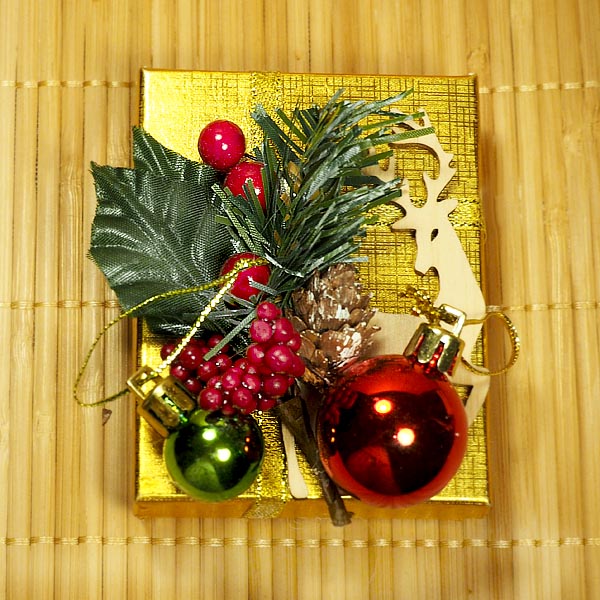 Коробочка картонная прямоугольная золотая с оленем TOV-0055 ручная работа 9х7х3 см