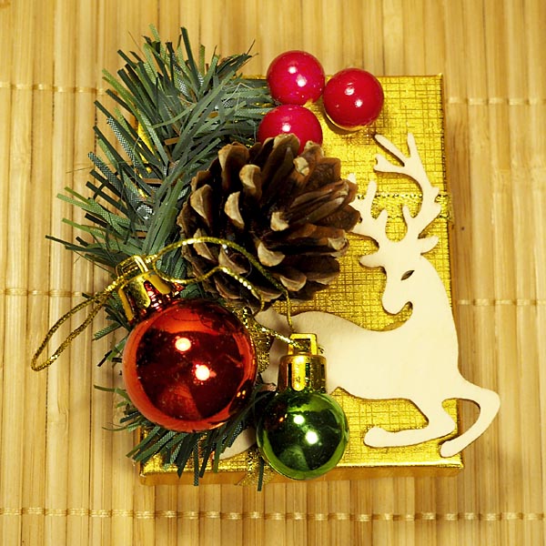 Коробочка картонная прямоугольная золотая с оленем TOV-0057 ручная работа 9х7х3 см