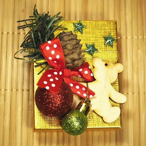 Коробочка картонная прямоугольная золотая с мишкой TOV-0059 ручная работа 9х7х3 см