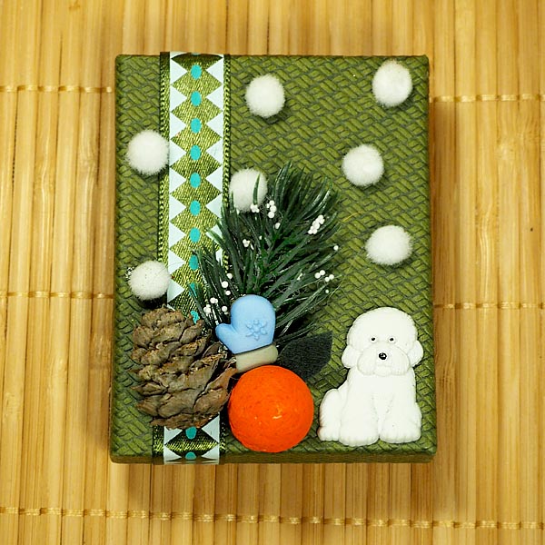 Коробочка картонная прямоугольная зеленая с собачкой TOV-0061 ручная работа 9х7х3 см